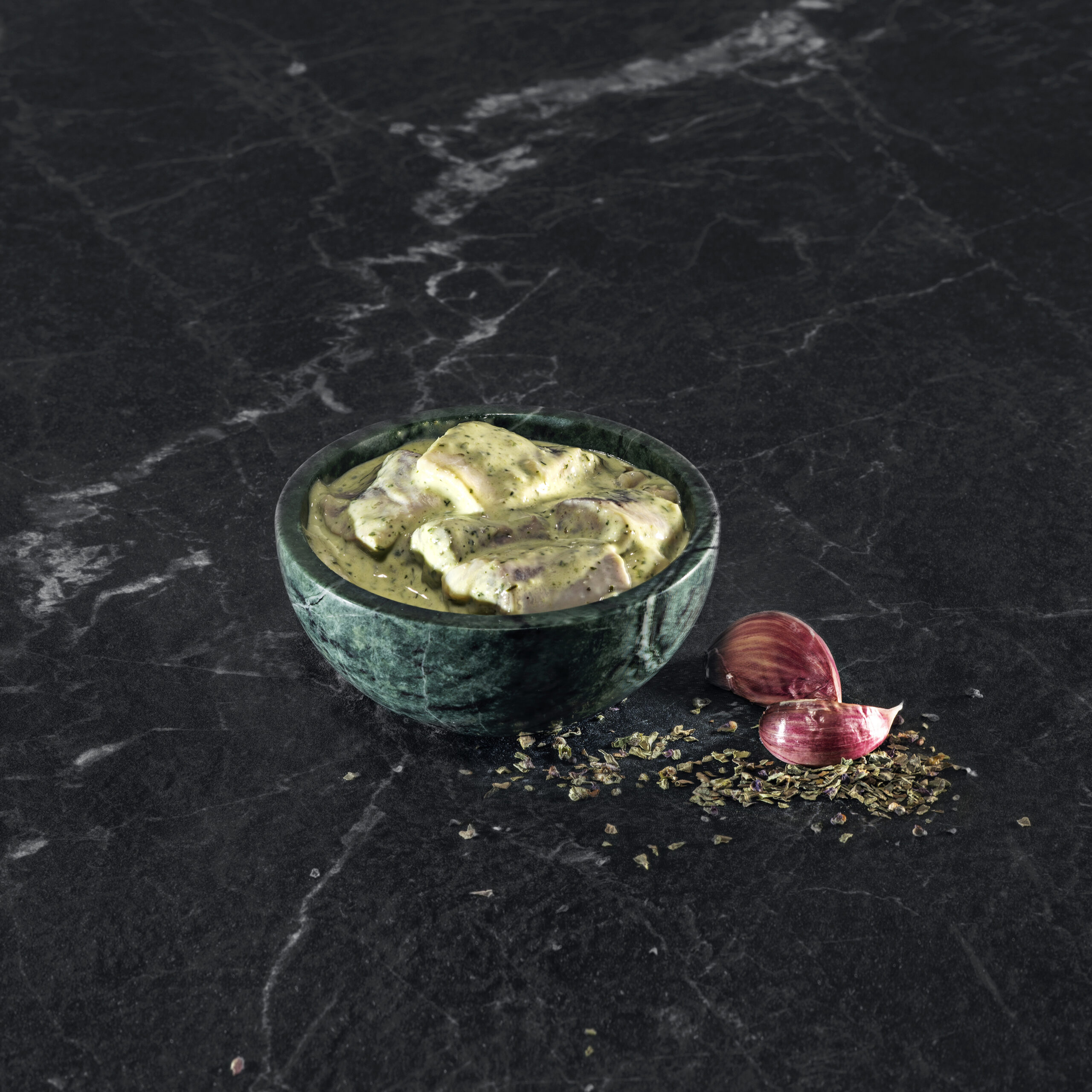Fräsch och örtig sill med tydlig vitlökssmak.